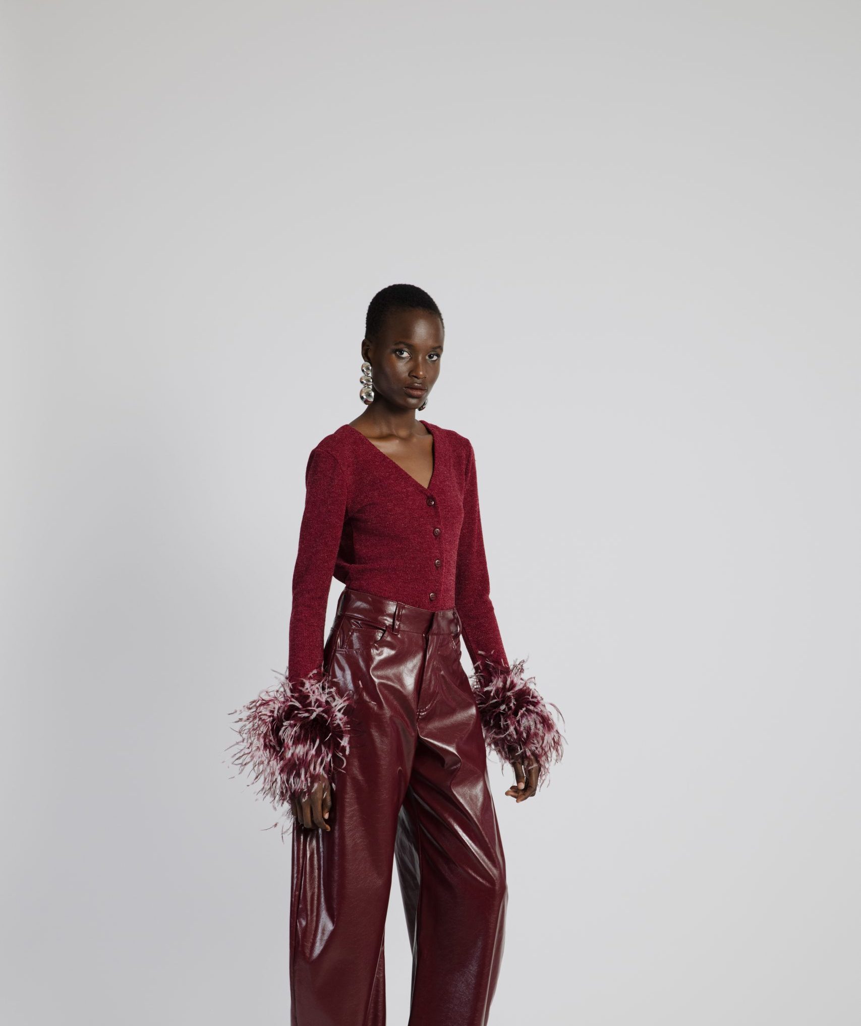 Feather Cardigan Burgundy