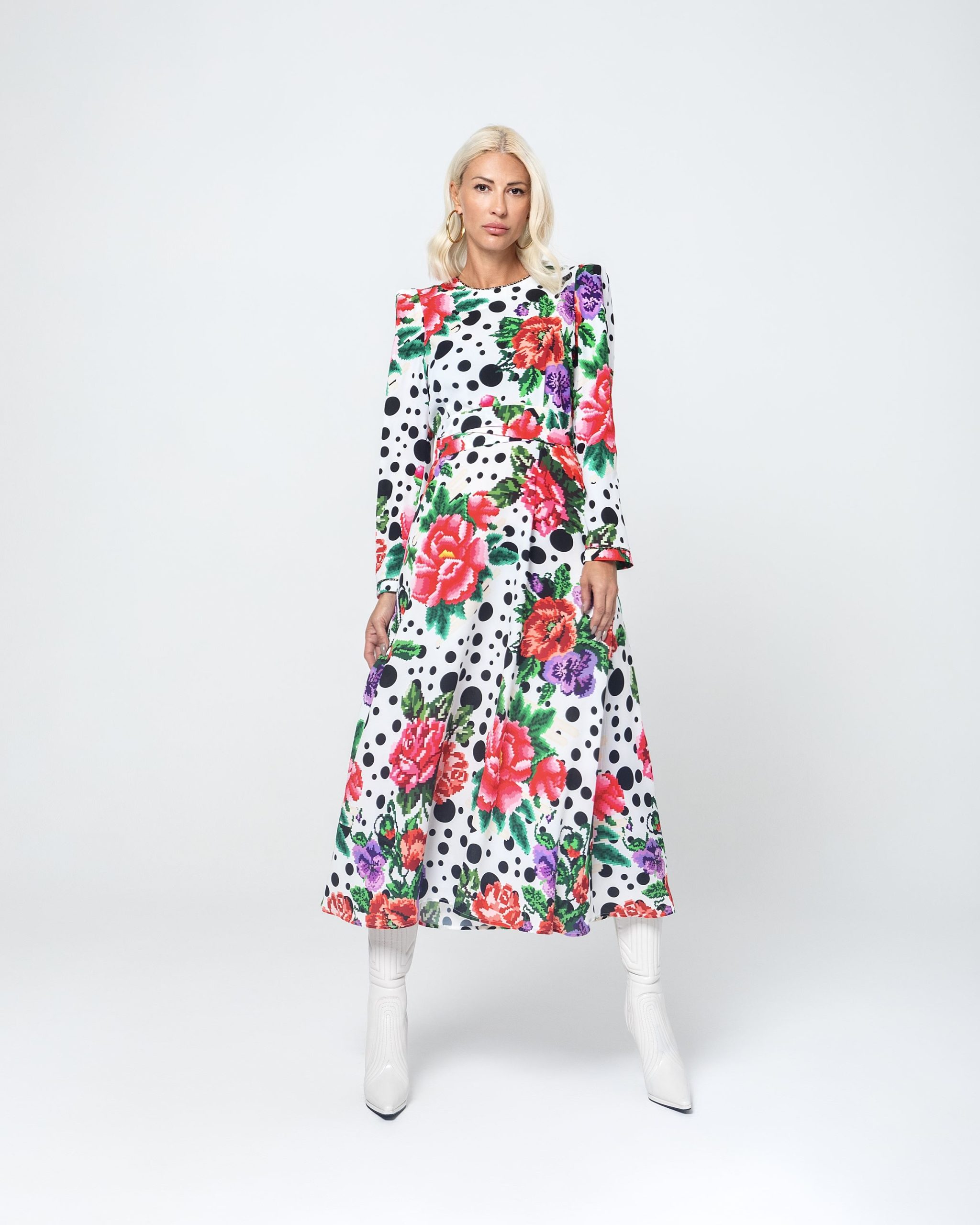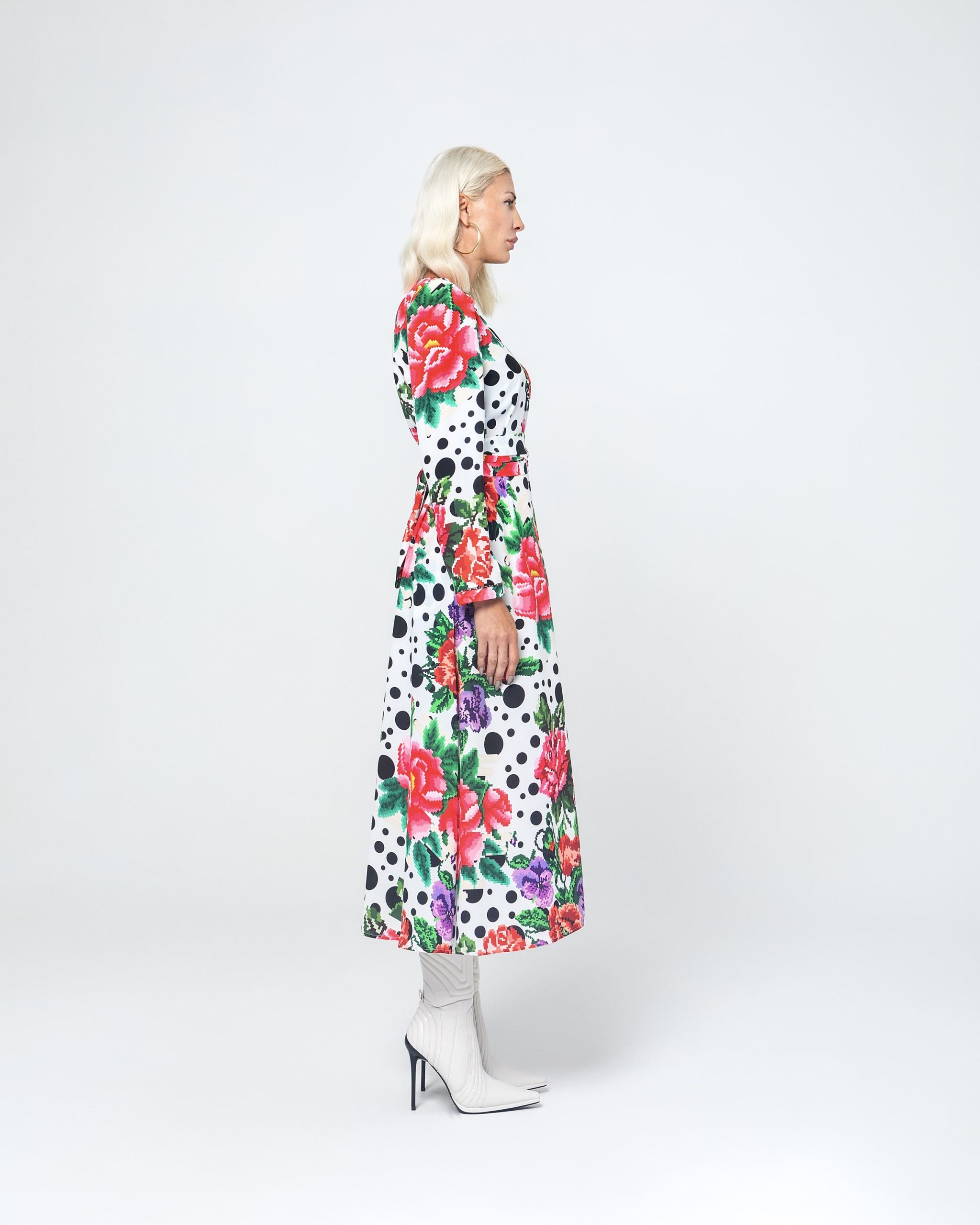Το φόρεμα διαθέτει πλαϊνές τσέπες και ζώνη
